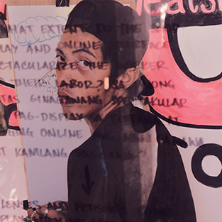 The Art Sweatshop was a one-day participatory installation that happened on 18 May 2019 from 9 am to 6 pm at Panpisco Building, Manila extending from 98B Collaboratory. A little less than two weeks prior to its opening, the Art Sweatshop posted a call for paid participants at 98B Collaboratory's social media platforms. Applicants were directed to an online form where they were informed of their responsibilities as participants. It stated the honorarium amount of PHP 200 per 30 minutes of work as well as the terms and conditions of the participation. The form gave notice that the participants will be recorded and streamed live. They were asked to give their particulars and book shift timings. A paper version was placed on-site. A day before the exhibition, an advertisement was posted at 98B’s facebook page to invite online audiences as clients to watch the live stream of the performative labour and comment on the feed a subject to be drawn.